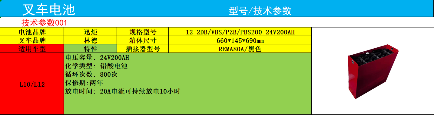林德叉车电瓶L10 迅炬12-2VBS200电动搬运托盘车蓄电池24V200AH厂家