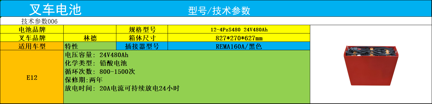 林德叉车电瓶E12 迅炬12-4PZS480 平衡重叉车蓄电池24V480AH厂家定制