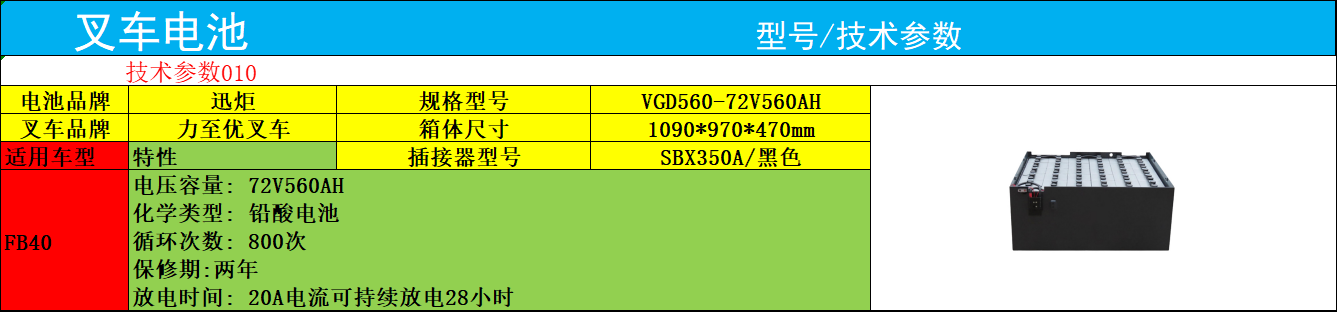 力至优叉车电瓶FB40 迅炬电动叉车蓄电池叉车锂电池VGD560 72V560AH多少钱