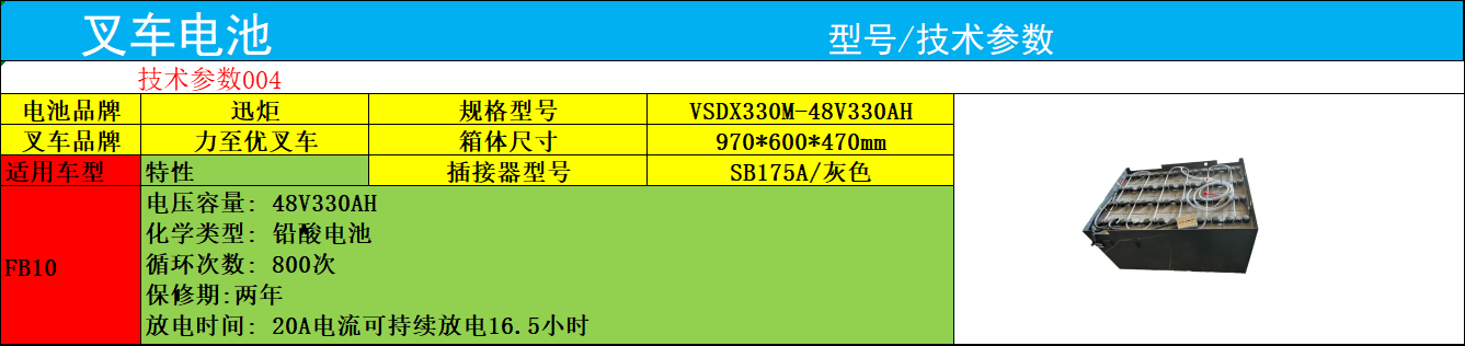 力至优叉车电瓶FB10 迅炬1吨电动叉车蓄电池VSDX330M 48V330AH价格
