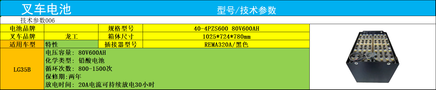 本州电池、江苏久中等叉车电瓶厂家,凭借20余年铅酸蓄电池生产经验,对40-4PZS600的工艺持续优化,使其自放电率每月仅3%,适配潮湿、多尘等复杂作业环境。日常使用中,定期补充蒸馏水、保持极柱清洁,可进一步延长这款80V600AH铅酸电动叉车电瓶的服役周期。如今,40-4PZS600已成为龙工LG35B叉车的标志性动力配置,彰显了叉车电瓶厂家在铅酸电动叉车电瓶领域的技术积淀。
